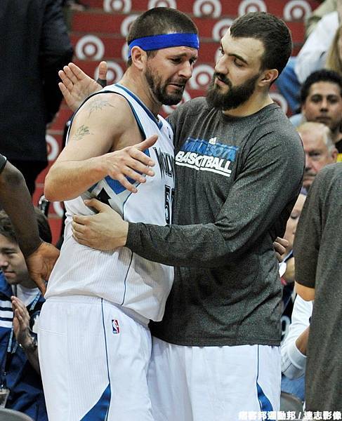 在 4 月 26 日這一天,這兩位灰狼的未來之星,一起戴上了深藍色的頭套,坐在場邊觀戰,這是屬於老大哥 Brad Miller 的日子,他將在這個球季結束後,為 14 年的職業生涯畫下句點。
